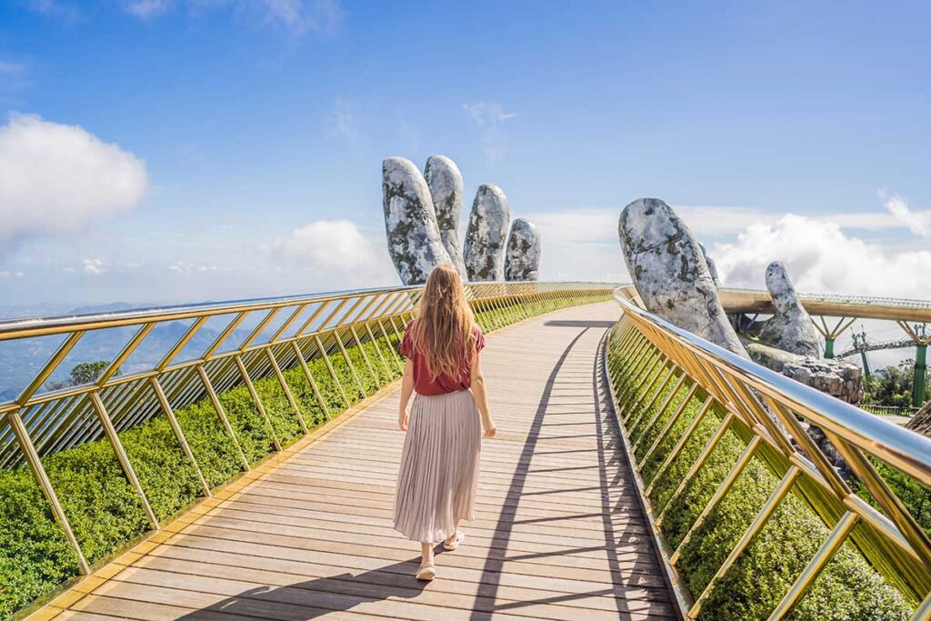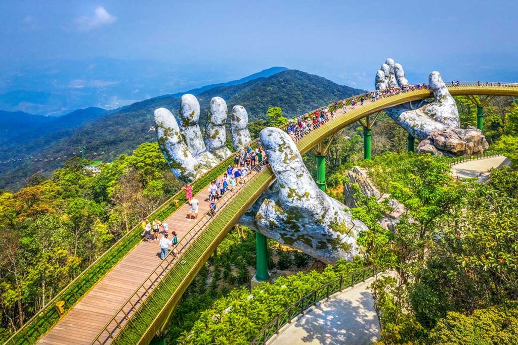 The Golden Bridge is a 150-meter pedestrian bridge perched above the Ba Na Hills, famous for its two giant stone hands that appear to lift it from the mountains. Read our full guide to learn how to get there, the best times to visit, what to expect, and how to plan your day at Ba Na Hills.