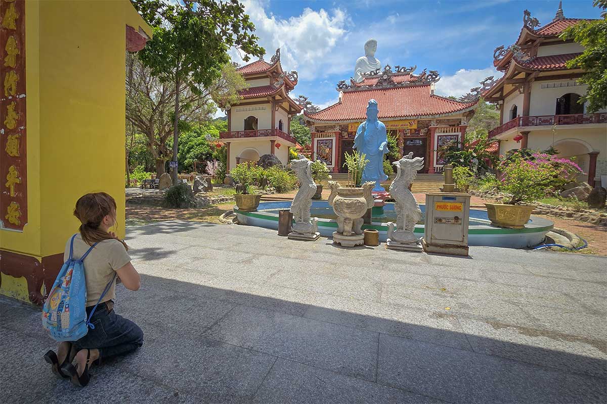 The temple sits on the slopes of Chop Vung Mountain, facing the South China Sea. The location itself is part of the attraction: fresh breezes, high vantage points, and a mix of coastal and countryside scenery make the climb worthwhile even if you’re not deeply religious. For local Buddhists, the temple remains a respected site for prayer and ceremonies, with the giant Buddha statue serving as a modern symbol of peace and devotion.