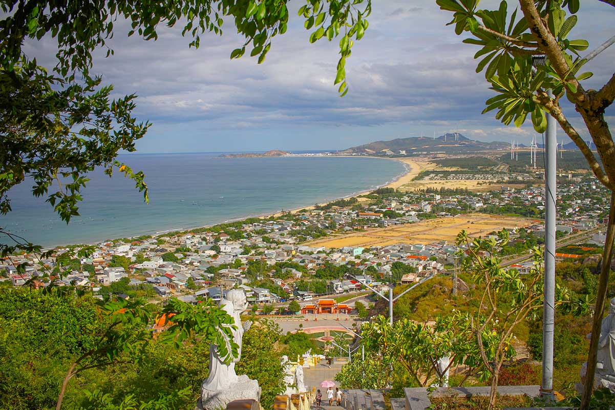 Ong Nui Temple is about 30 kilometers north of Quy Nhon, set on Chop Vung Mountain along the Phuong Mai Peninsula. The site is easy to spot thanks to the giant white Buddha visible from the coast road. Travel time from Quy Nhon is roughly 40–50 minutes by car or motorbike.