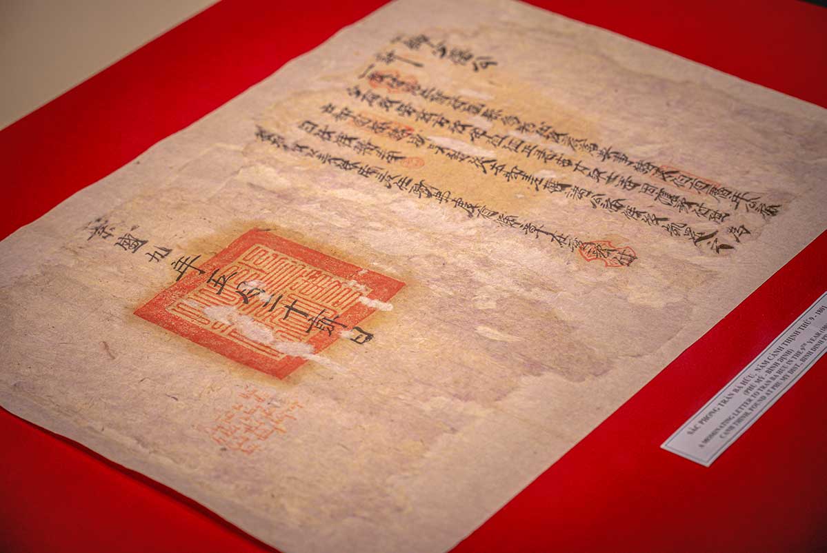 Original royal edict with Tay Son dynasty seal, preserved at Quang Trung Museum, offering a glimpse into 18th-century governance and history.