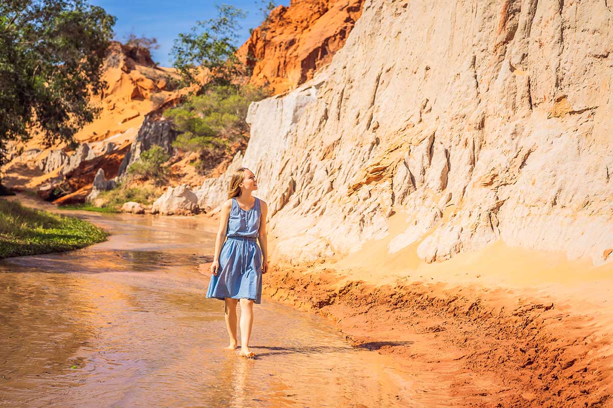 The Fairy Stream is a shallow, red-colored stream surrounded by unique rock formations and greenery. The walk through the stream is a relaxing experience and doesn’t require a guide. Bring sandals or go barefoot as you wade through the ankle-deep water. This attraction is close to Mui Ne, making it a convenient stop during your visit.