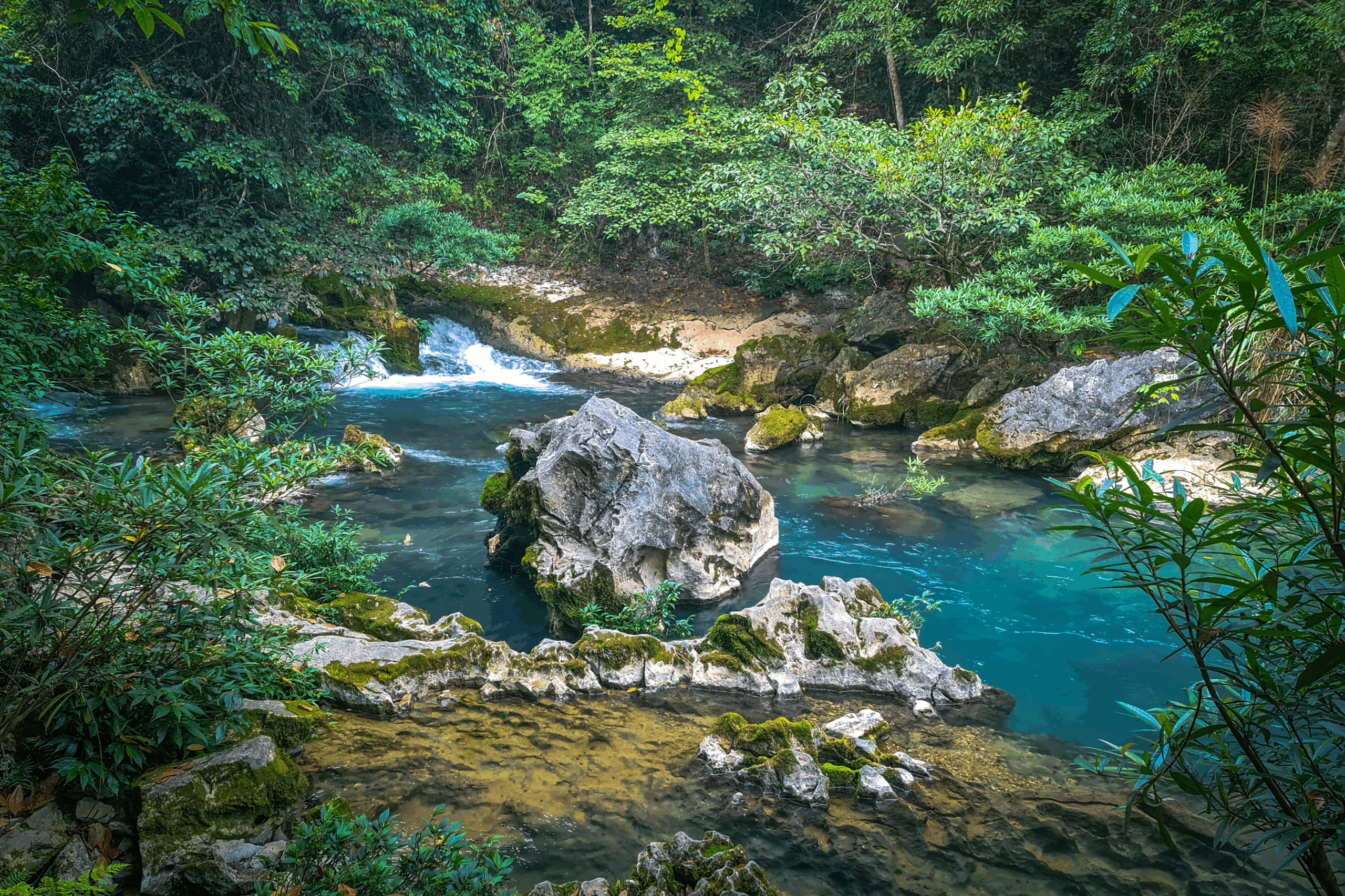 It is great to walk along the Lenin Stream that flows past the Pac Bo cave in the bluest and crystal clear water. The peace and tranquility you experience in Pac Bo is regularly accompanied by a group of picnicking Vietnamese or couples who are more than happy to share their love by the water.