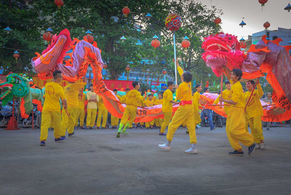 In Ho Chi Minh City, areas with a strong Chinese-Vietnamese community (such as Chinatown in District 5) have a higher chance of hosting dragon dance performances during important dates.