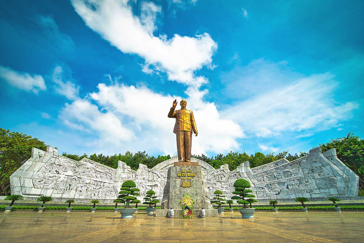 The Ho Chi Minh statue standing prominently in Great Unity Square, a central landmark in Pleiku city.