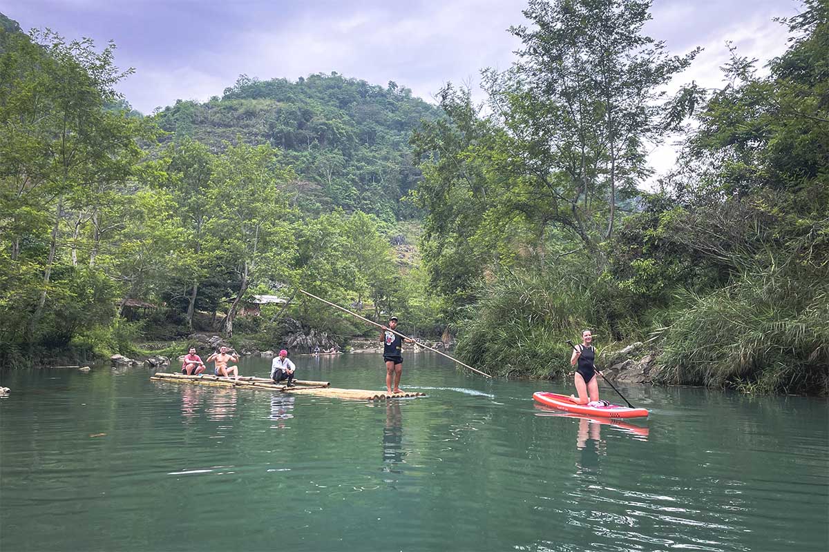 While the experience is tranquil in dry weather, it’s important to check conditions before visiting, as recent rainfall can cause the water flow to be too strong for the rafts to operate. The road to the site is scenic but challenging, requiring careful driving. If you’re traveling from Meo Vac to Du Gia, this is a unique alternative to the Du Gia Waterfall, offering a less crowded and more immersive natural experience. A local family runs the site, offering basic food and camping options, but services are limited, so it’s best to bring some essentials.
