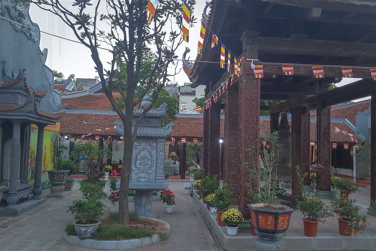 Hai Ba Trung Temple features a spacious and traditional layout, beginning with an outer gate that leads into a large courtyard. Inside, you’ll find a drum tower, bell tower, and the main sanctuary area where the Trung Sisters are worshipped. The architecture blends Buddhist and folk elements, with curved roofs, dragon motifs, and symbolic animal carvings. Despite being located in a busy district, the temple offers a surprisingly peaceful retreat from Hanoi’s urban noise.