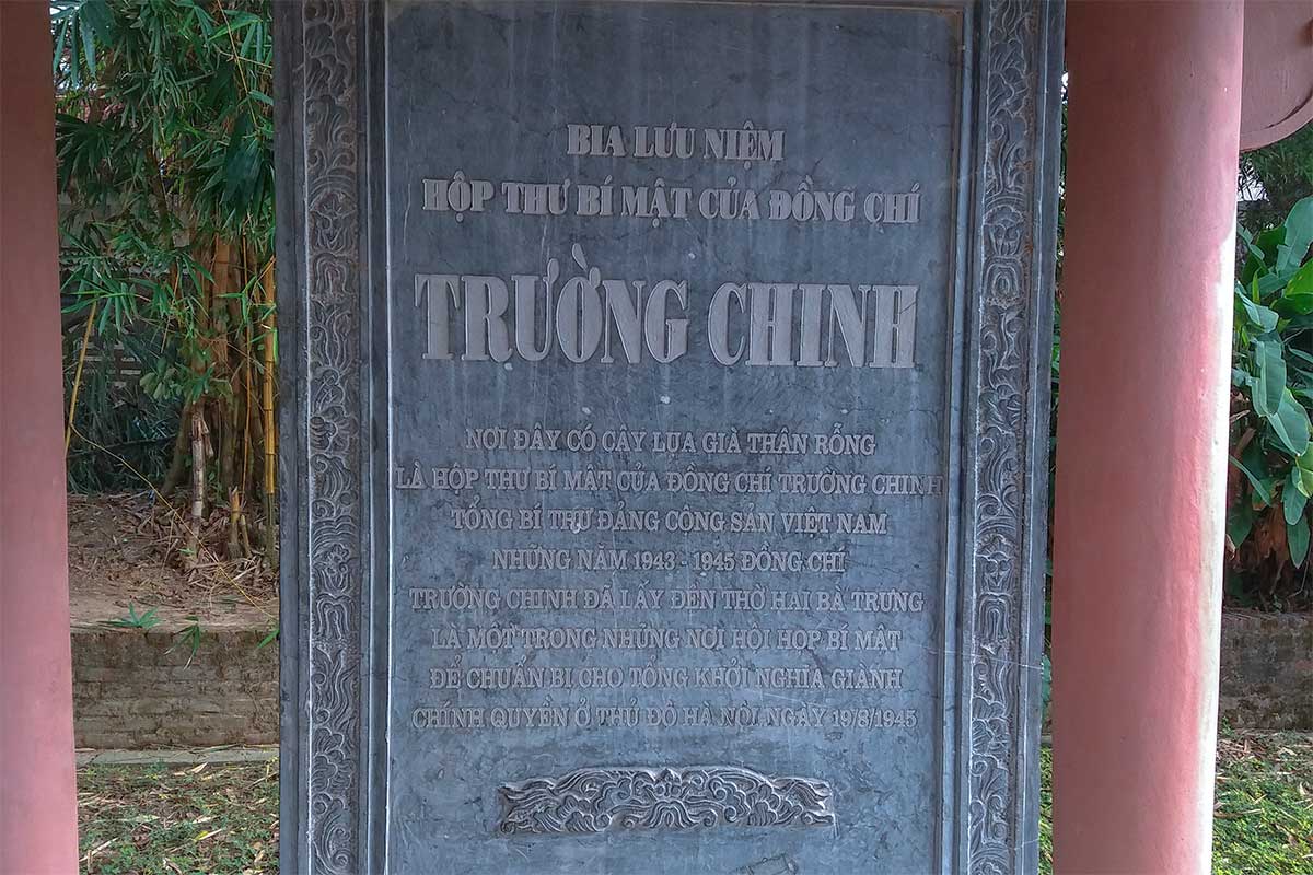 A large memorial stone about the Trung Sisters written in Vietnamese inside the Hai Ba Temple