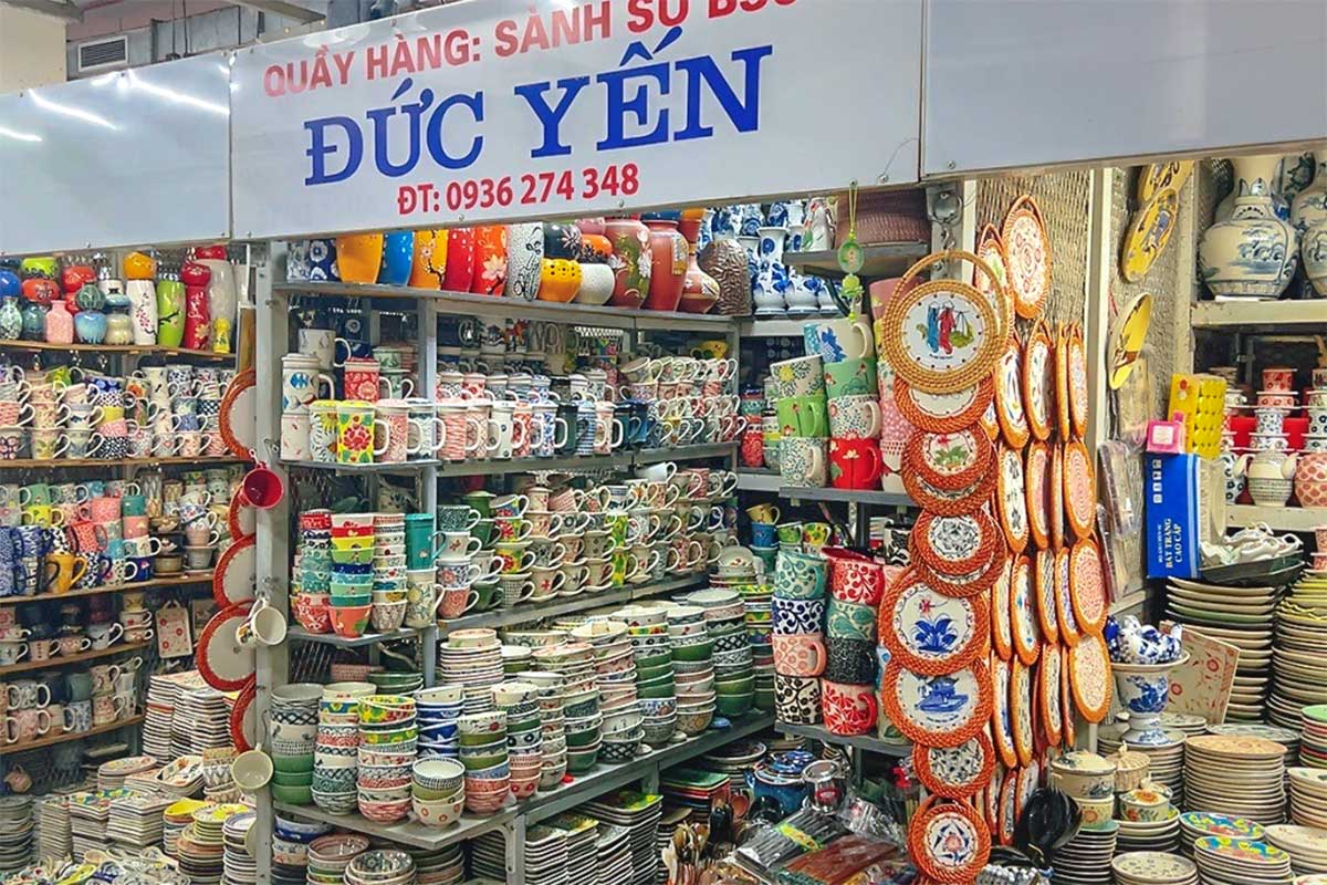 A few stalls scattered through the basement and first floor sell Bat Trang-style ceramics — cups, bowls, vases, and other pottery pieces that make great souvenirs. There are also small shops offering lacquerware, decorative trays, or handmade gifts, though selection and availability can vary. It’s not a major craft market, but still a good place to browse for something authentic and handmade.