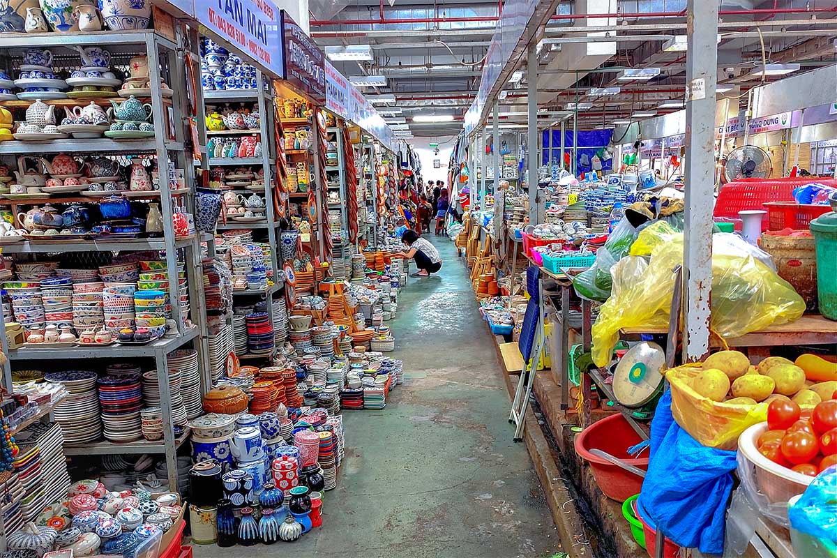 Originally a busy open-air market known for selling leather goods, Hang Da was rebuilt in 2010 into a modern concrete structure. Locals now refer to it as the “underground market” because the main market area, including food and clothes, is located below ground level. While it’s no longer the go-to shopping spot for locals, it still draws curious visitors looking for cheap eats, ceramics, or a different slice of Hanoi life.
