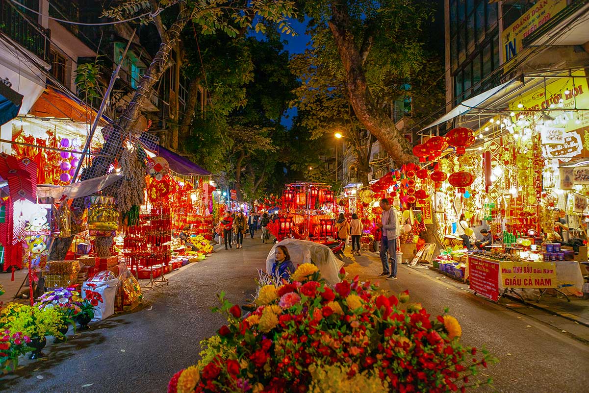 Surprisingly elaborate for a non-traditional holiday, Christmas turns Hang Ma into a winter-themed explosion. There are fake snowflakes, Santa figurines, light-up reindeer, and pine decorations in every direction. It’s a great time to visit if you’re looking for quirky contrasts and colorful chaos. Read more about: Christmas in Hanoi.