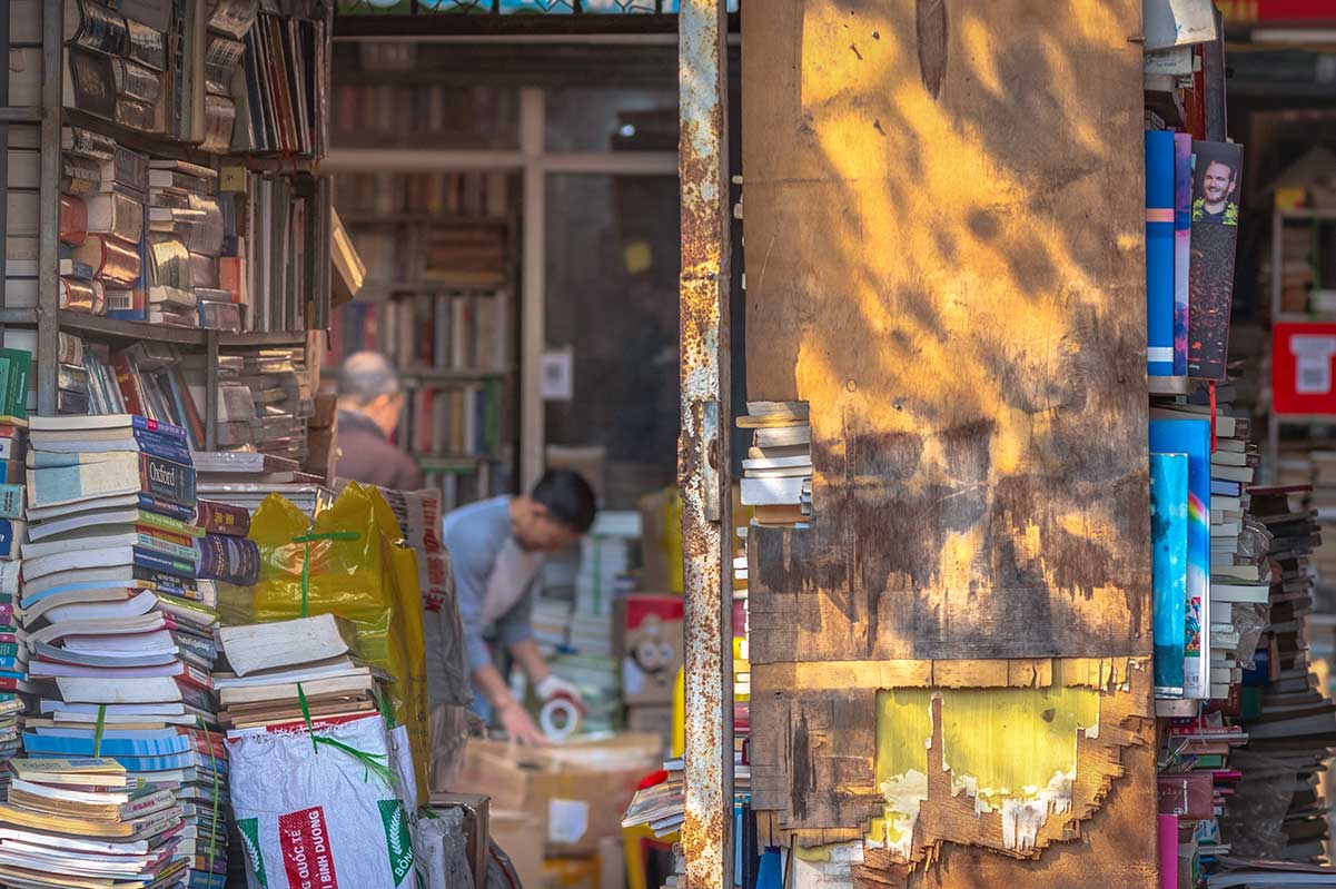 At the heart of it all is the famous Mao Bookstore, tucked away upstairs in a narrow alley. This humble spot is a local institution, known for its attic-like charm and floor-to-ceiling stacks of books. Dinh Le also has a small selection of secondhand books, and many shops offer discounts up to 50% off the cover price — especially on older or educational titles.