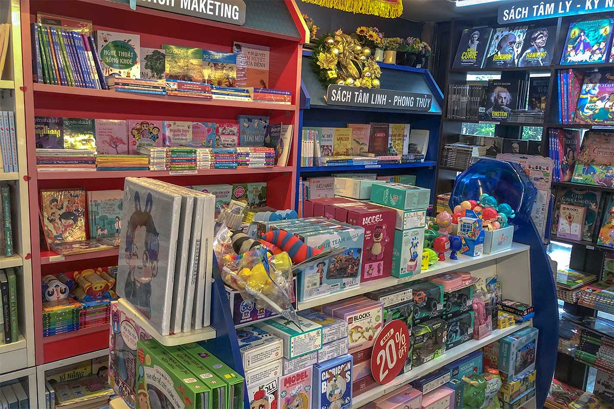 Hanoi Book Street is home to around 20 small bookstores and publisher stalls, many of them representing major Vietnamese names like Kim Dong, Nha Nam, Tien Phong, Phuong Nam, and Fahasa. Most of the books are in Vietnamese, covering genres from children’s literature and poetry to business, philosophy, and Vietnamese history.