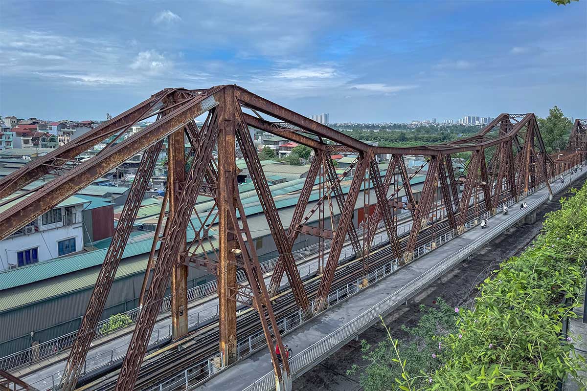 The bridge itself was completed in 1902 by the French and, at the time, was considered a masterpiece of colonial engineering. Spanning more than 1.6 kilometers across the Red River, it was the first steel bridge to connect Hanoi with the countryside and ports to the east. Much of the original structure still stands, though sections have been repaired after repeated bombings during the Vietnam War.