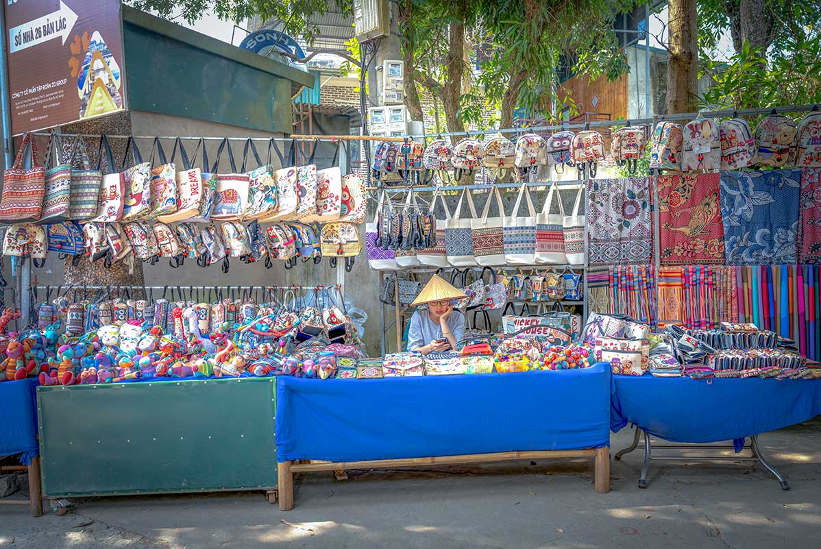 Scattered around the village are small souvenir stalls and homestay-run shops selling handmade goods — textiles, bags, scarves, purses, and small decorative items.