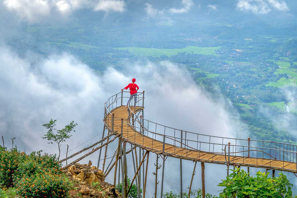 Hang Kia, known as a cloud hunting destination, offers breathtaking views of a sea of clouds during early mornings. The area features flower-covered hills, scenic platforms, and photo spots like tree swings. A small entrance fee (around 30,000 VND) grants access to this magical place.