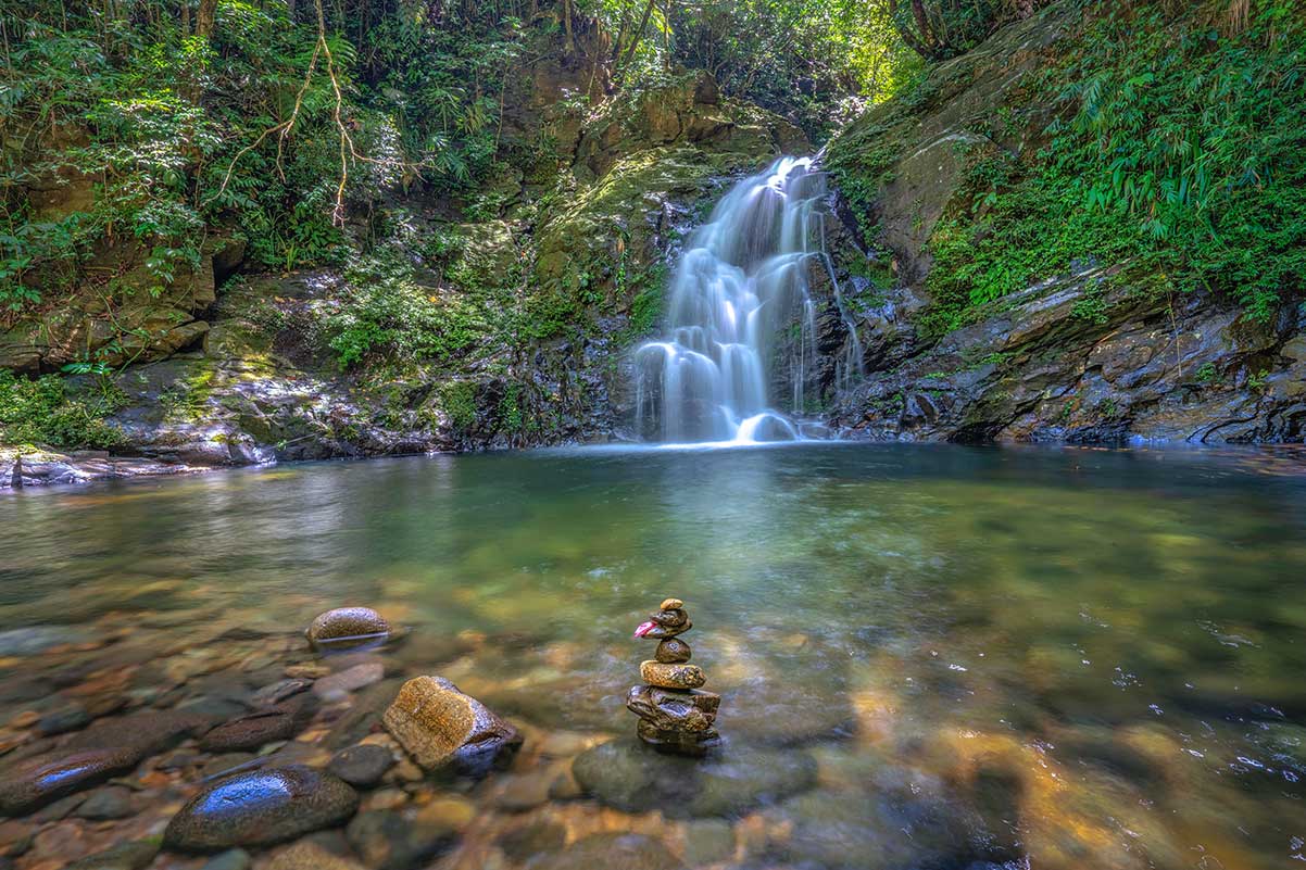 This series of five emerald-green pools lies in shaded forest, fed by cool mountain streams. The third lake is a favourite for swimming, with clear water and a natural rock ledge to sit on. The trail is about 2 km with rocky, uneven terrain. An optional “adventure” section involves rope-assisted crossings and scrambling over boulders, but there is an easier bypass. In the rainy season, currents can be strong, so swimming is best in the dry months.
