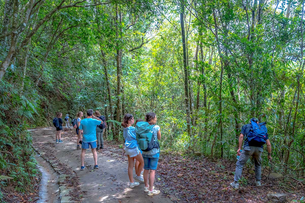 Lightweight, breathable clothing is best, but long sleeves and trousers are recommended for protection against insects and leeches. Wear sturdy hiking shoes with good grip, and bring a light jacket as it can be cooler at higher elevations.