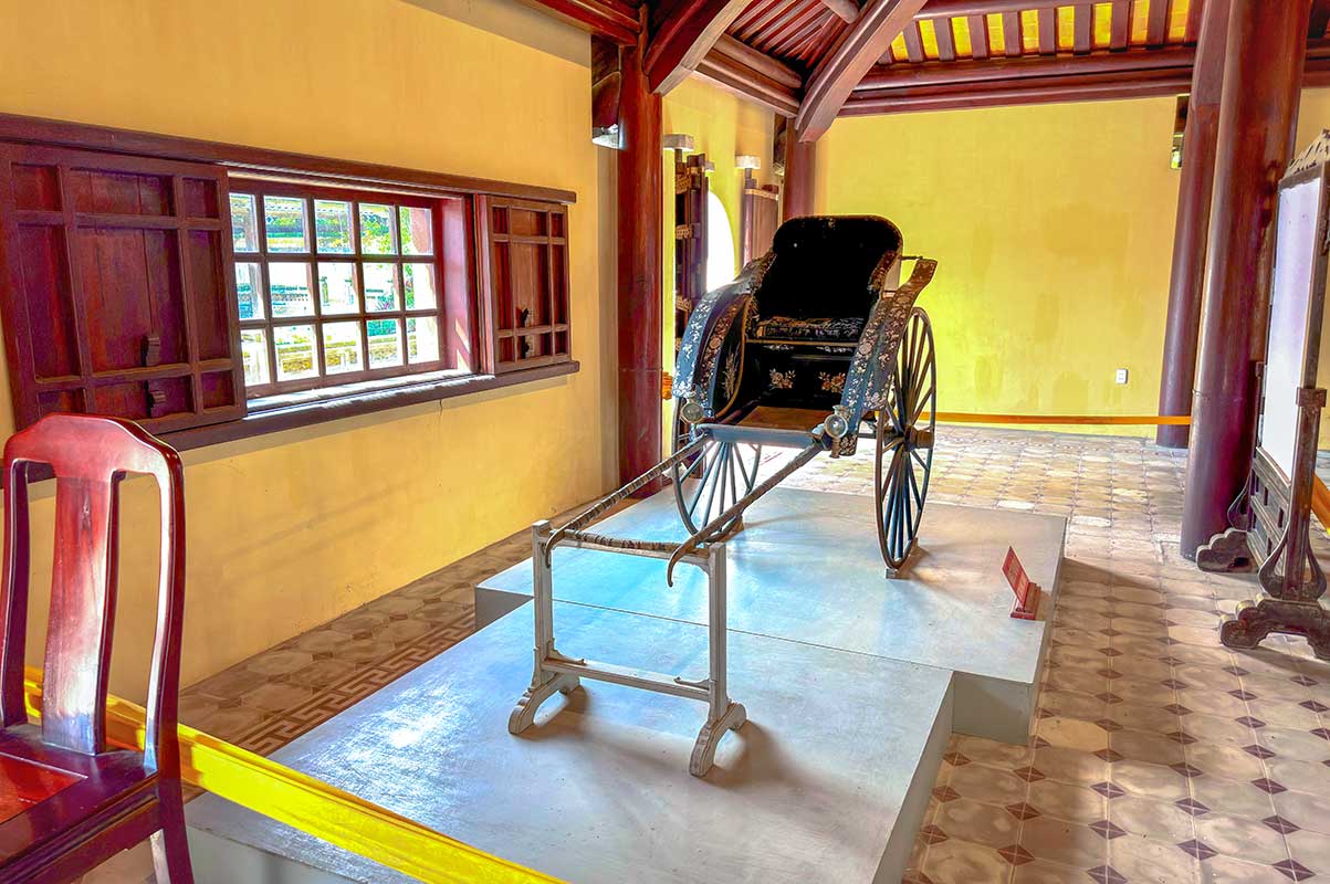 A traditional rickshaw displayed inside Dien Tho Palace in Hue Imperial City