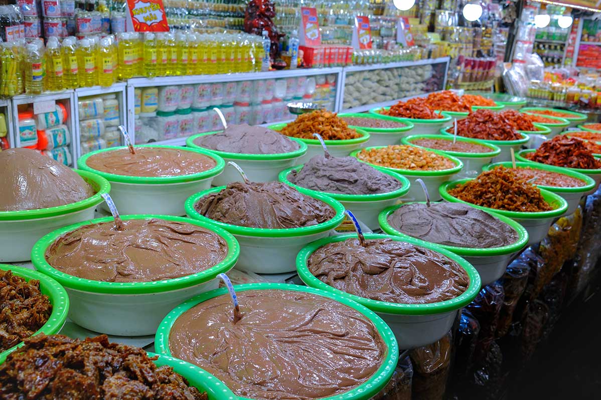 You’ll also find stacks of Hue’s famous fermented shrimp paste, anchovy sauce, and various dried snacks—great for taking home or munching as you explore. Sellers are usually happy to offer free tastings, especially for fish sauce or dried fruit.