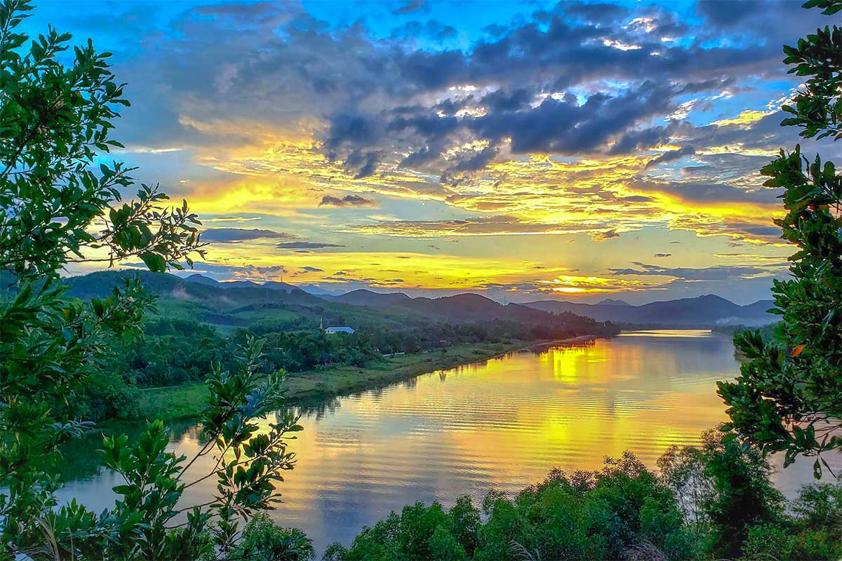 Vong Canh Hill offers one of the best sunset views in Hue, overlooking a bend in the Perfume River framed by mountains and greenery. It’s a peaceful spot with benches and shaded areas to sit and enjoy the view.