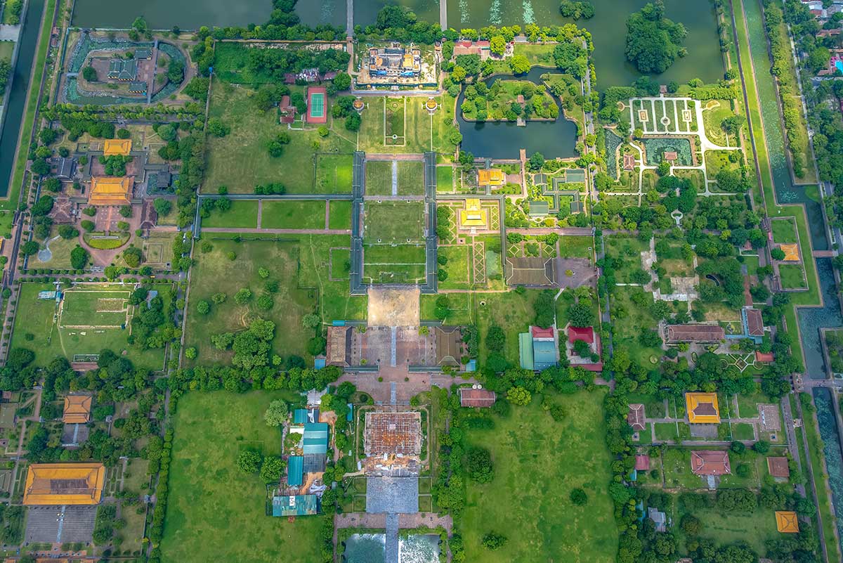 Located at the center of the larger Hue Citadel, the Imperial City was enclosed by a second set of walls and gates and carefully aligned along a north–south axis, with mountains behind and the Perfume River flowing in front. It was designed as a city within a city — the seat of royal power, and the stage for official ceremonies, ancestor worship, education, and state governance.