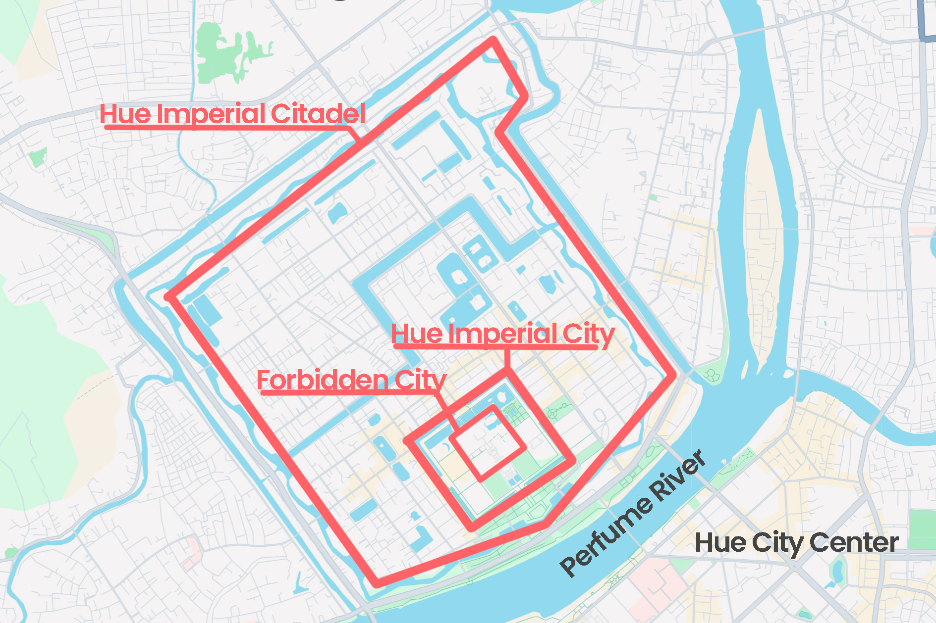 When researching Hue’s historical sites, you’ll likely come across the terms Hue Imperial City, Hue Citadel, and Forbidden Purple City. While they are often used interchangeably, they each refer to different parts of the same royal complex — and understanding the layout will help you make sense of what you’re visiting.