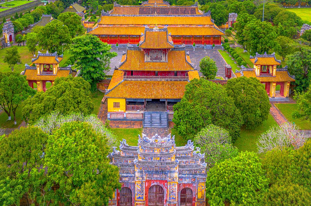Hue is easily reached by domestic flights, long-distance buses, or the north–south railway line, with good connections to cities like Da Nang, Hanoi, and Ho Chi Minh City. Once in Hue, the Imperial City is centrally located — just across the Perfume River from the main hotel and restaurant area.