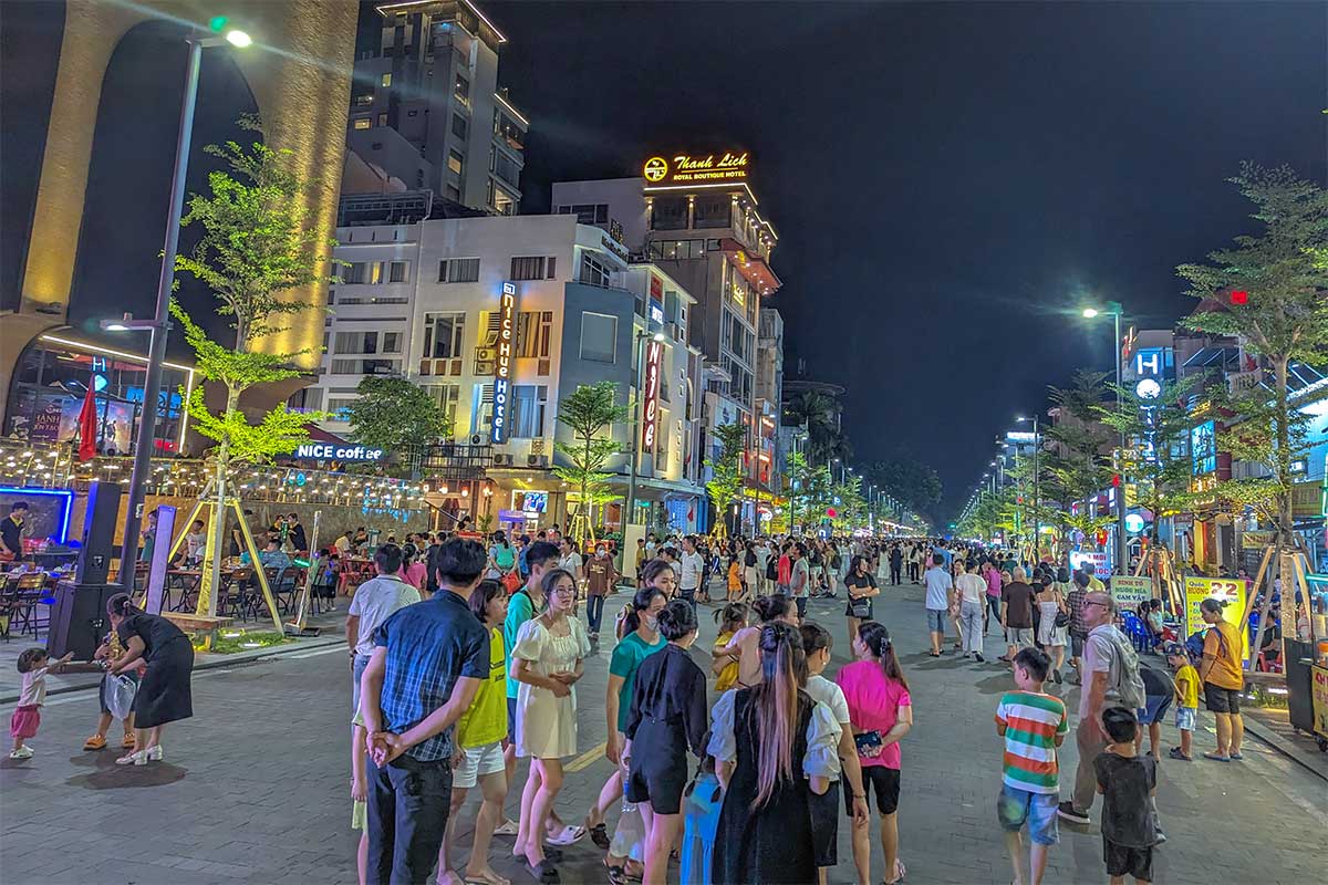 Hai Ba Trung Walking Street in Hue full of locals