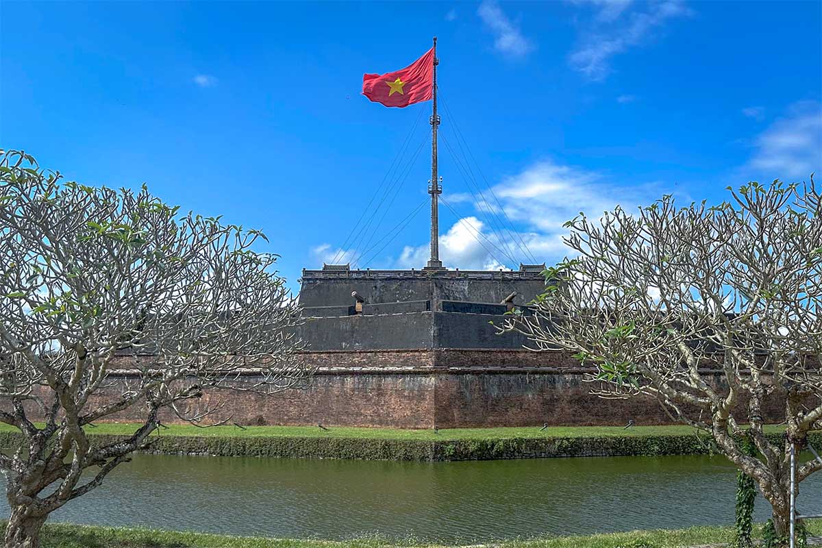 View of Hue Flag Tower seen from Phu Van Lau on the opposite of the moat
