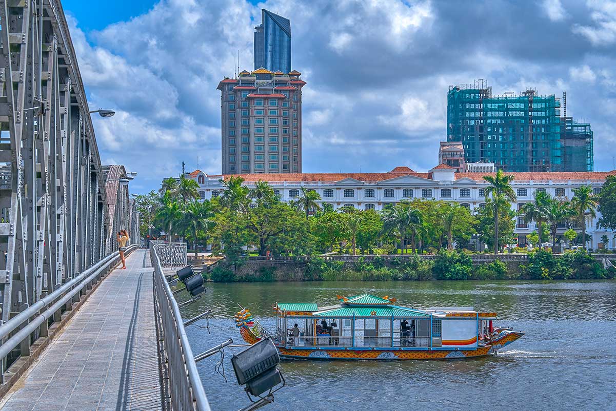 Trang Tien Bridge is one of the most famous landmarks in Hue. It crosses the Perfume River and connects the old Imperial City on the north side with the modern center on the south. Built over 100 years ago during the French colonial era, the bridge has a long and interesting history.
