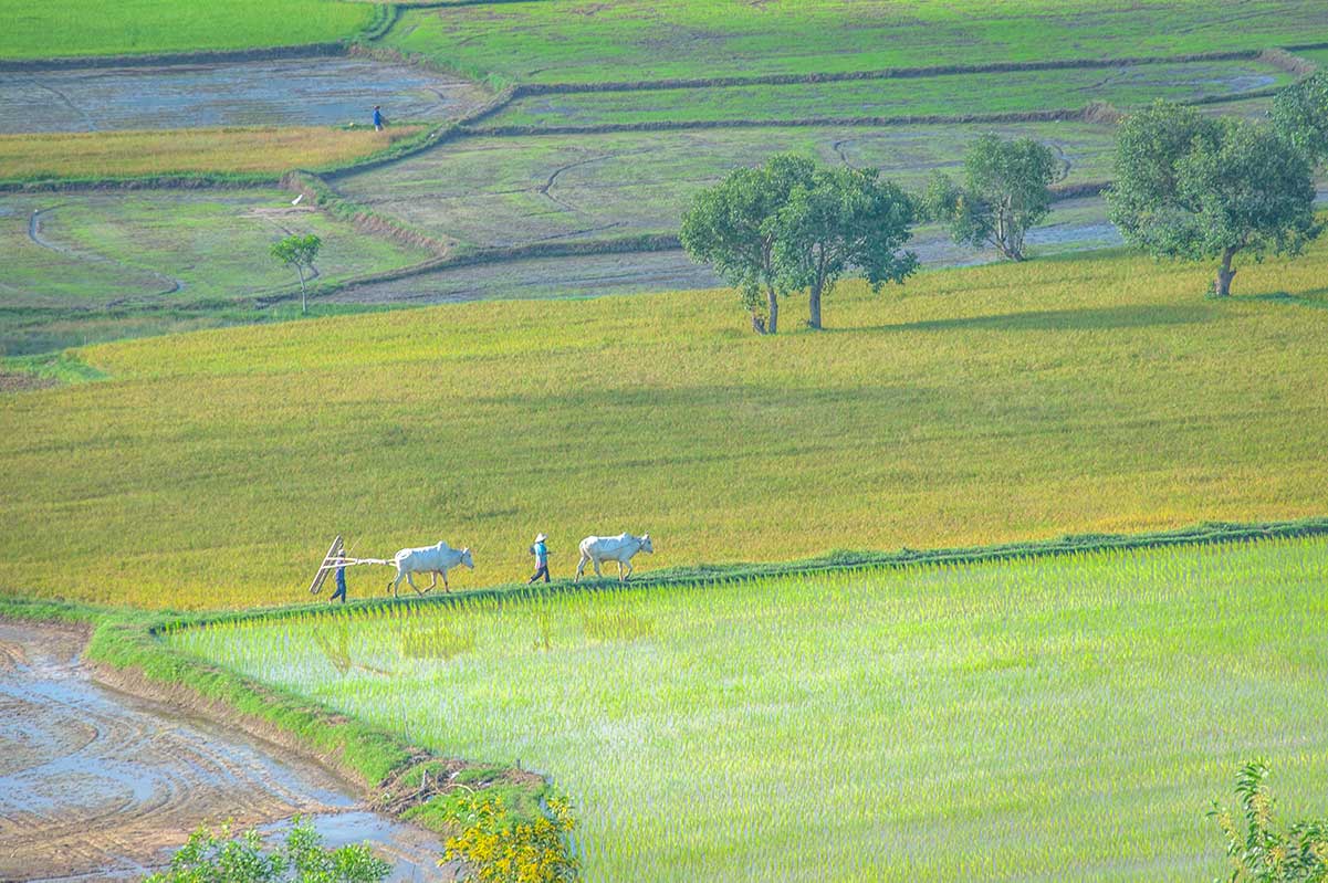 - Growing months (Dec–Jan, May–Jun, Sep): lush green paddies stretch across the plain. This is when the fields look fresh and vibrant.