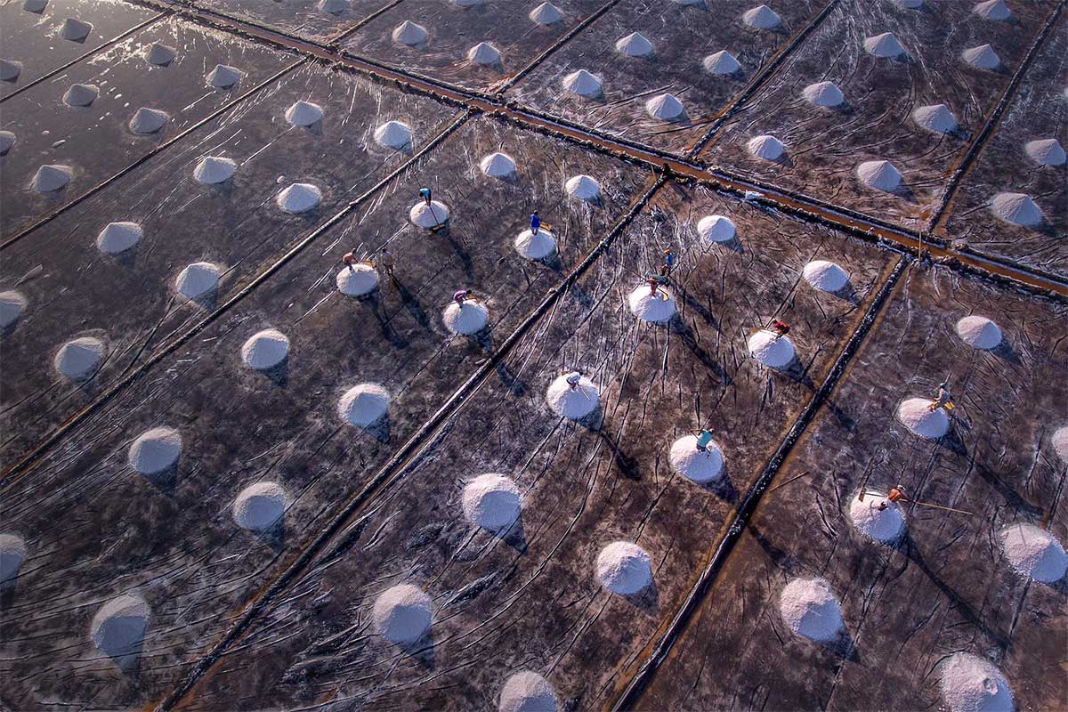 More recently, some farmers have started using plastic tarpaulins to improve quality and speed up production, though the investment is costly. The work is still heavily dependent on weather—too much rain can ruin weeks of effort—and falling salt prices have made it harder to sustain. As a result, the overall area of salt fields has been shrinking as some farmers switch to more profitable livelihoods.