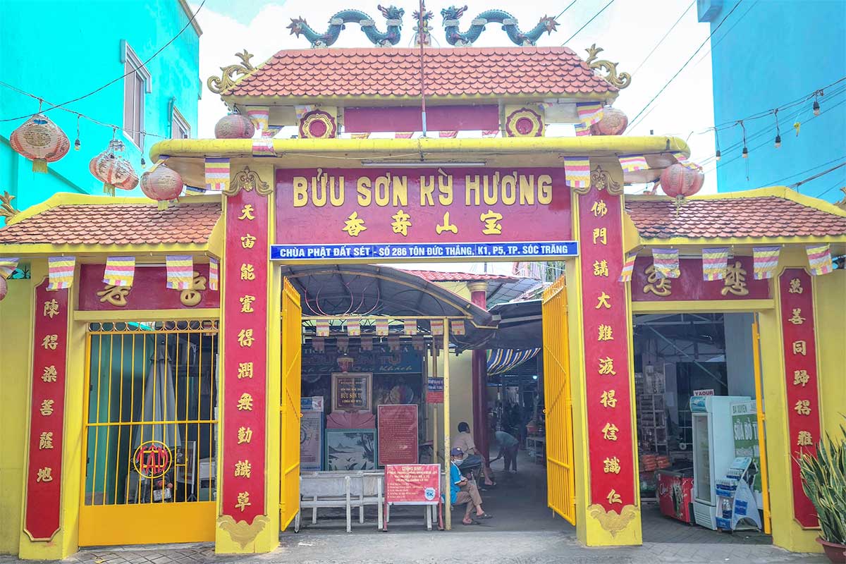 Clay Pagoda’s official name is Bửu Sơn Tự (Buu Son Tu), though everyone in Soc Trang knows it by its nickname, Chùa Đất Sét – literally “Clay Pagoda.” You’ll find it right in the center of Soc Trang City at 286 Ton Duc Thang Street, Ward 5, making it easy to combine with other stops in town. The site has been officially recognized as a provincial cultural heritage site, which reflects its unique character more than its scale—this is not a vast complex, but rather a modest temple with remarkable details inside.
