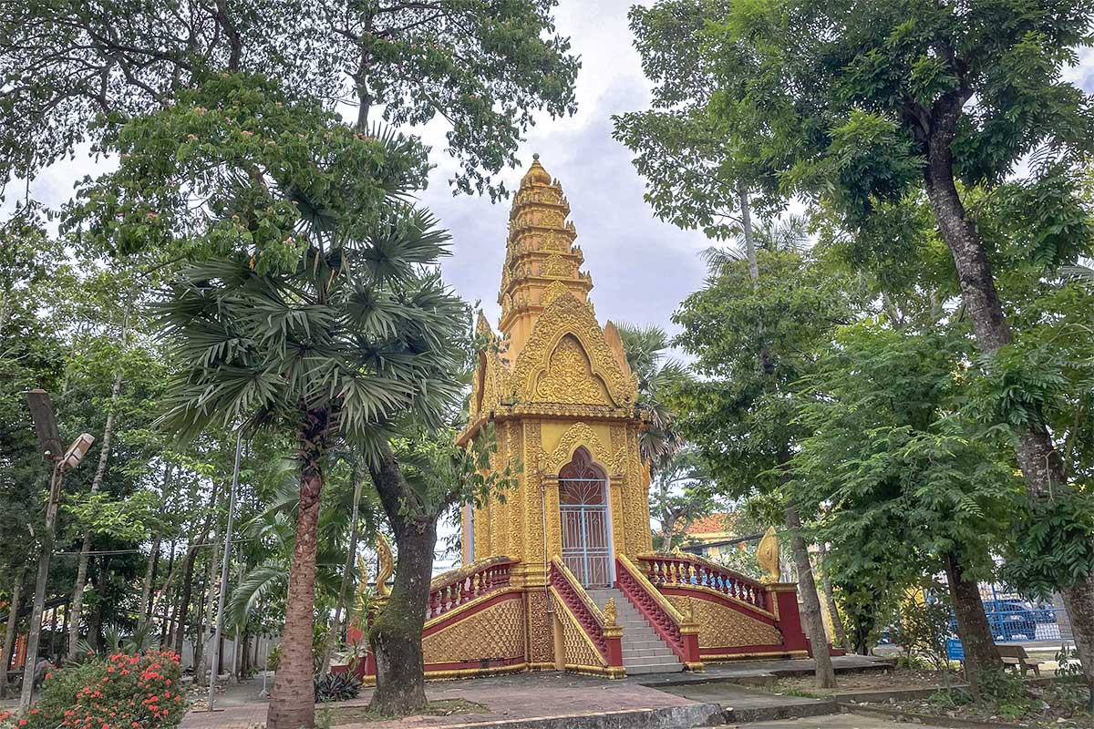 The temple dates back to the early 1500s, with construction recorded around 1532–1533. Its first version was built simply from wood and thatch before being rebuilt more solidly with brick and tile. The name Kh’leang in Khmer translates to “rice storage,” reflecting the agrarian roots of the community that established it. Recognized as a national architectural heritage site, the pagoda is one of the oldest Khmer temples in the Mekong Delta.