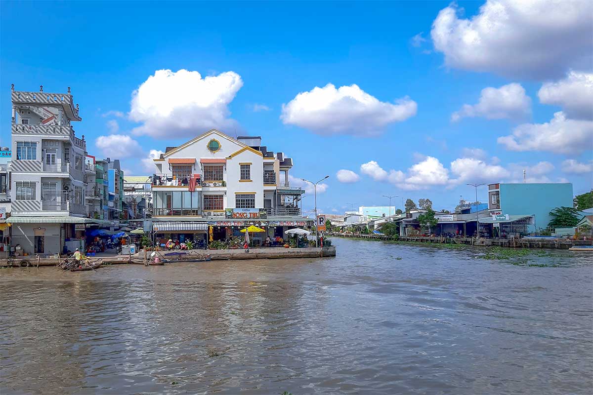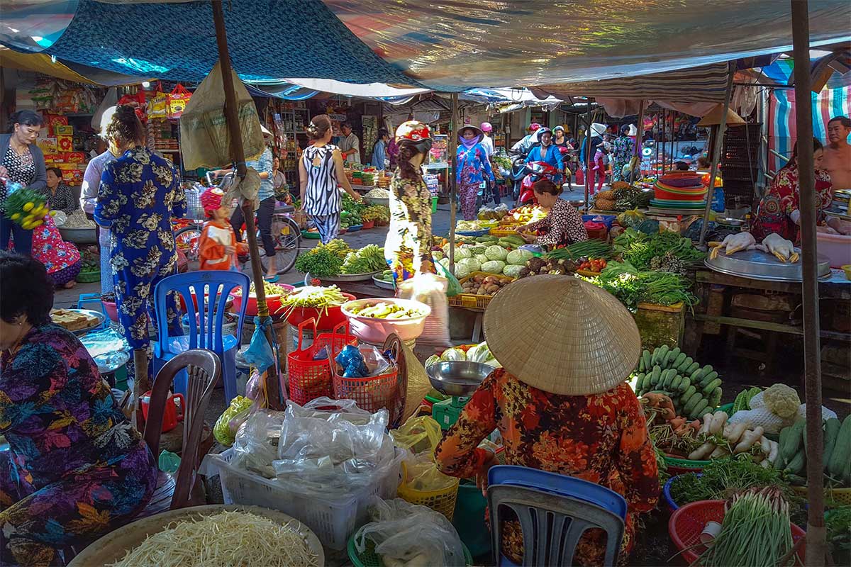 Stalls here sell fresh produce, vegetables, tropical fruits, rice, and household goods, creating the same bustling energy you’d expect in a delta town. It’s a good place to observe daily life and sample regional food.