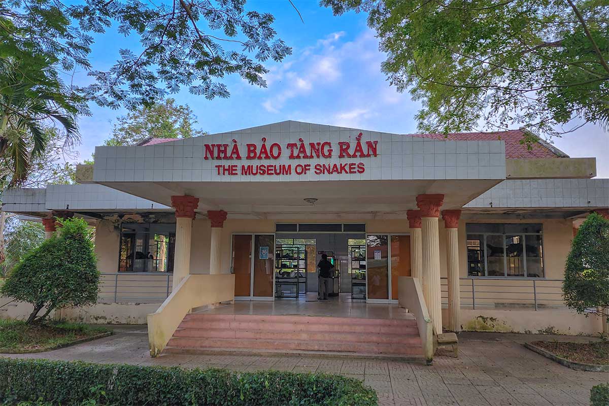 Dong Tam Snake Farm, located just outside My Tho in Tien Giang Province, is a military-run facility officially known as the Centre for Rearing, Researching, and Processing Medicinal Materials under Military Zone 9. Its main purpose is medical: breeding snakes, producing anti-venom, and running a small on-site hospital that treats hundreds of snakebite cases each year. Alongside this role, the farm has been opened to the public as a so-called “snake museum,” with live animal enclosures and preserved specimens.