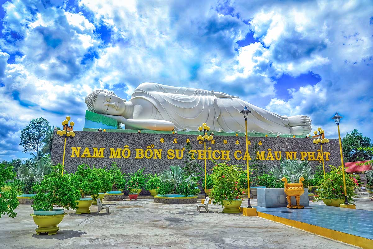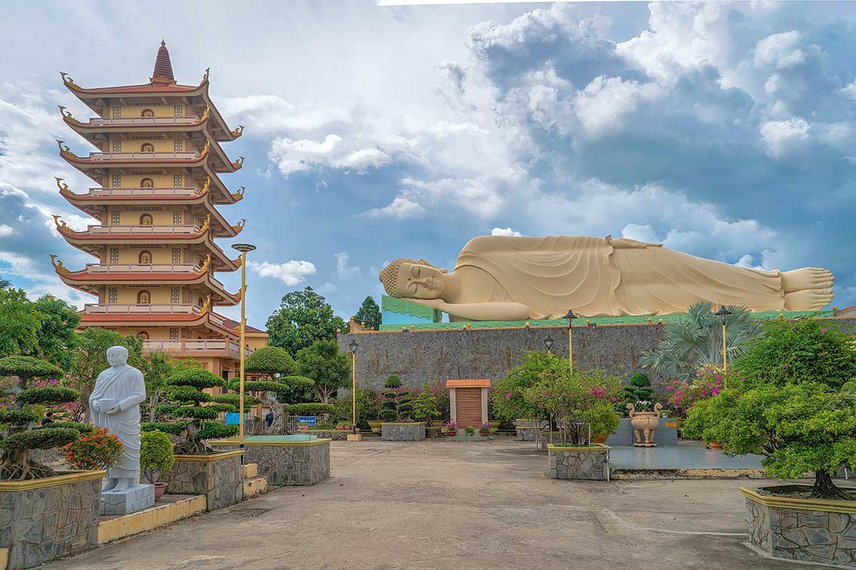 Vinh Trang Pagoda is a 19th-century Buddhist temple in My Tho, Tien Giang Province, and one of the most visited religious sites in the Mekong Delta. Set in leafy gardens with bonsai, fruit trees, and shaded paths, it serves both as an active place of worship and as a cultural landmark recognized at the national level.