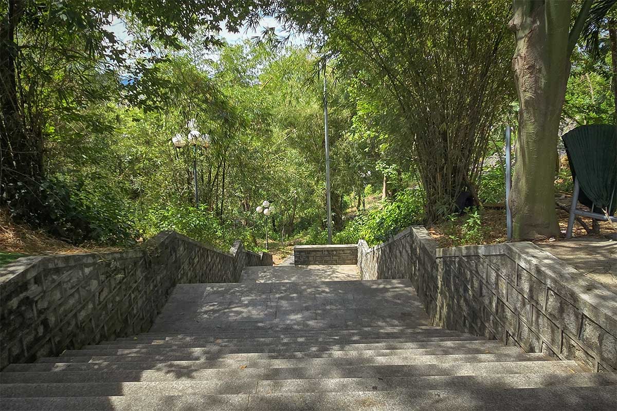 To reach the tower, you can either take a staircase directly up the hill or follow a paved road that winds more gently to the top. The climb itself is short—around five to ten minutes—and easy to manage for most visitors. If you prefer not to walk, an electric cart runs up and down the hill for a small fee of about 15,000 VND.