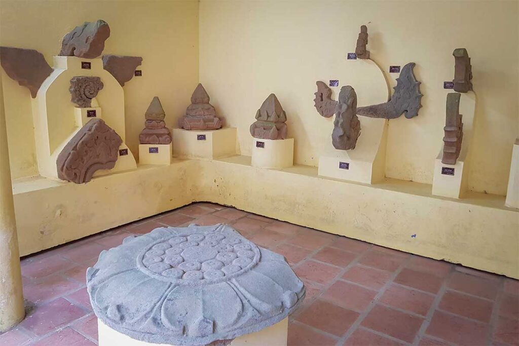 A few steps north of the towers, a modest display hall houses recovered sandstone fragments, decorative lintels, and a finial that once topped one of the towers. Outside, near the entrance, stands a surviving linga — the symbol of Shiva — under a small shelter. The museum is sometimes closed or unstaffed, but even a quick look gives a better sense of the craftsmanship and symbolism behind the site.