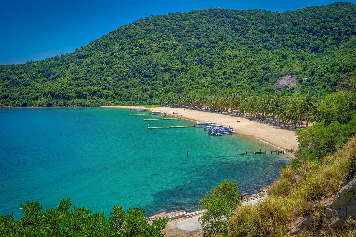 Cham Island is not just one island but a small archipelago of eight, with Hon Lao being the main inhabited one. Two villages — Bai Lang and Bai Huong — sit on its coast, surrounded by steep hills, coconut palms, and small curving roads that link the beaches.