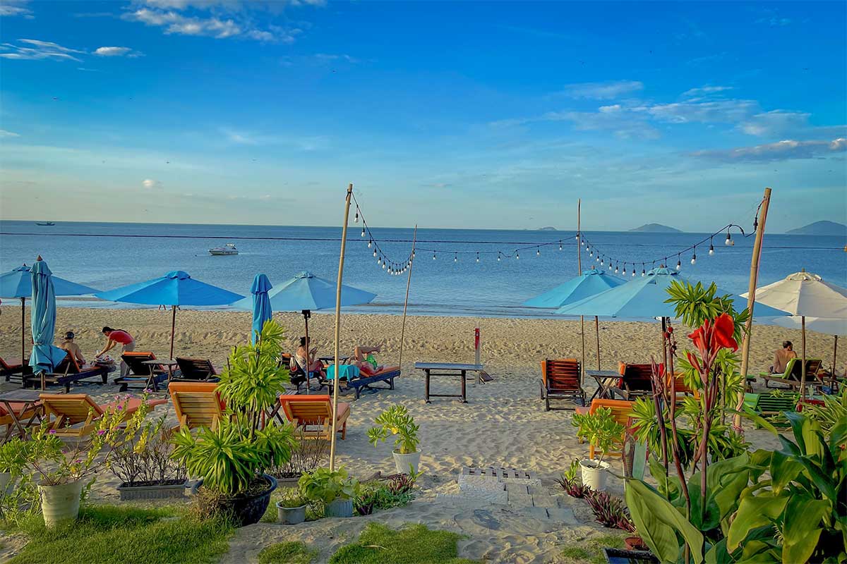 Probably the most stylish spot on the beach, with two seating areas — one set back in the shade, and one directly on the sand. The menu is diverse, with seafood, vegetarian dishes, Vietnamese classics, and even paninis. Service is friendly, and prices are reasonable. Great for a longer lunch or early dinner with a view.