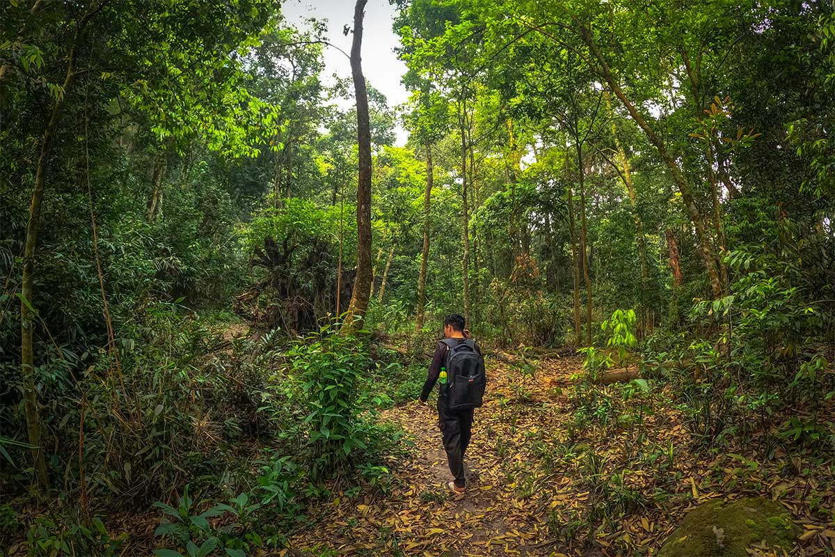 After about 30–45 minutes, the path enters a dense forest. Here you’ll follow narrow trails lined with vines, tall trees, and large moss-covered boulders — a signature feature of Pha Luong’s landscape. The climb becomes steeper and more humid, but also more shaded.