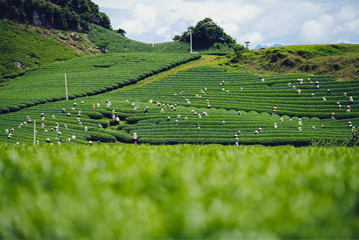 - Tea plantations – Moc Chau is famous for its rolling green tea fields. Some areas allow visitors to walk through the plantations or stop for tea tasting.