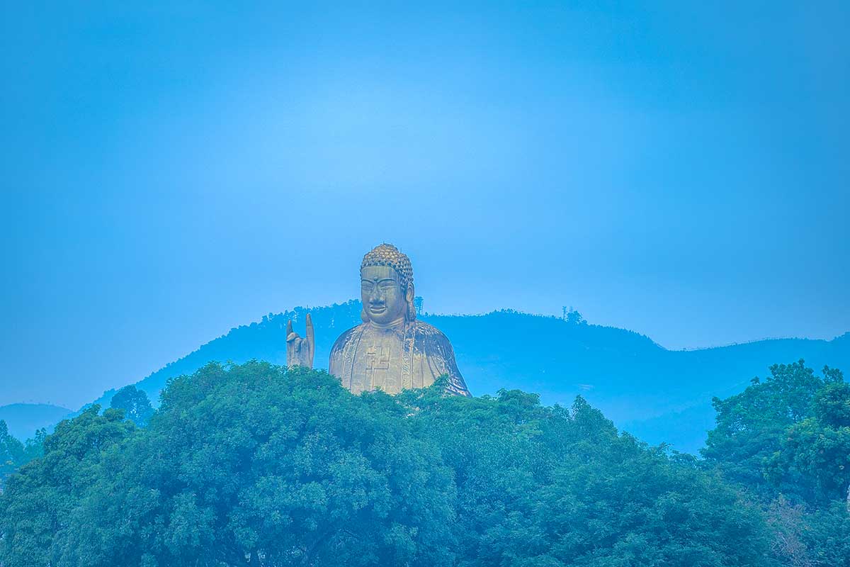 This bright yellow Buddhist complex features a massive 45-meter-tall statue of Shakyamuni Buddha, making it one of the most visually striking landmarks at the lake. The architecture is bold and symbolic, and the temple is perched on a forested slope overlooking the water. While it’s a spiritual site, it sits within the theme-park-like atmosphere of the resort, so it may not feel truly meditative—especially on weekends or holidays.