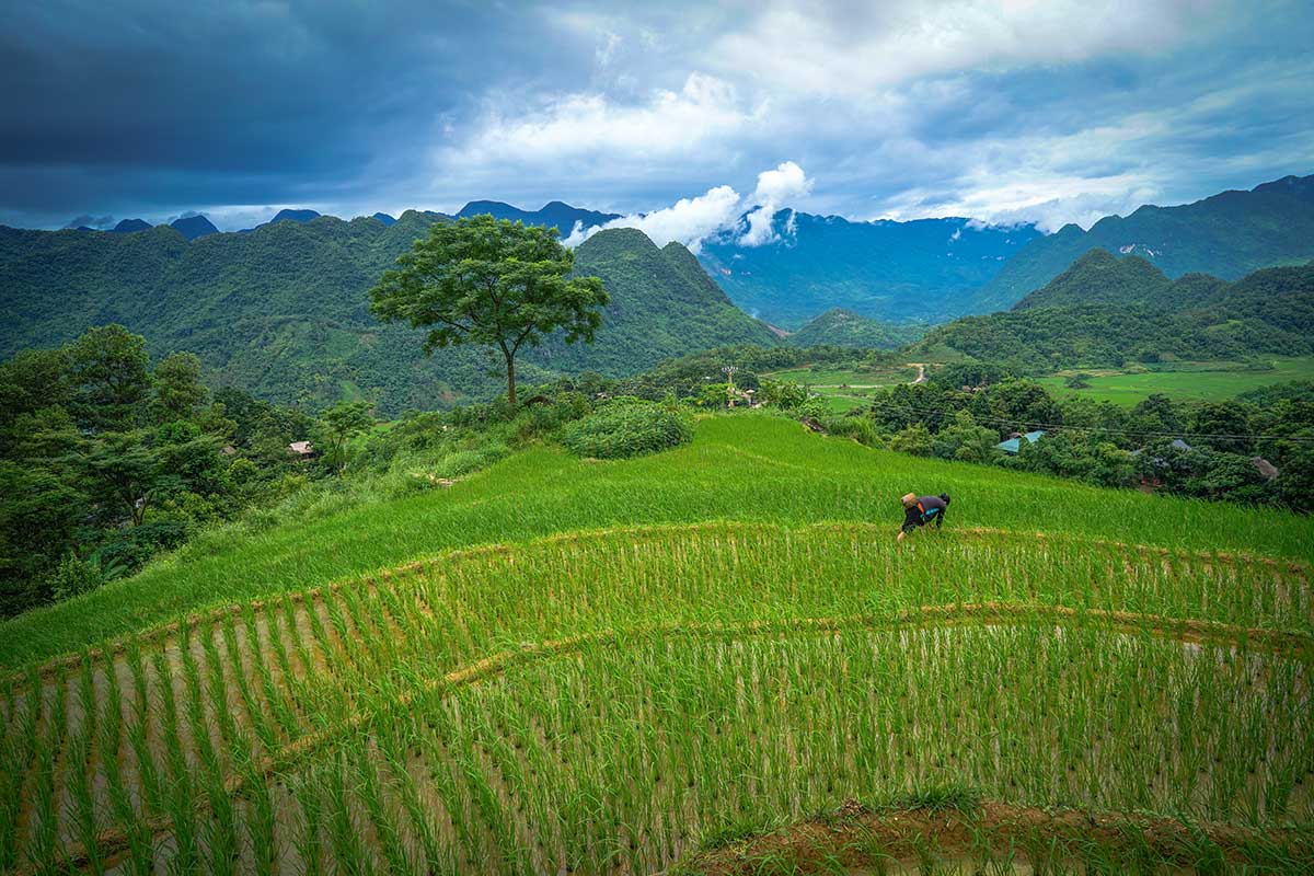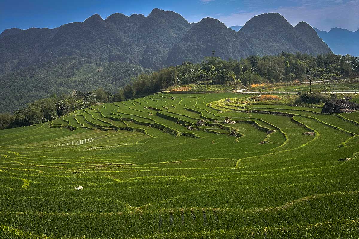 The first rice season starts early in the year. Farmers begin planting in February, and by March and April, the valley is covered in vibrant green rice terraces. This is one of the best times for photography — the paddies are full, lush, and glowing under the spring sun.