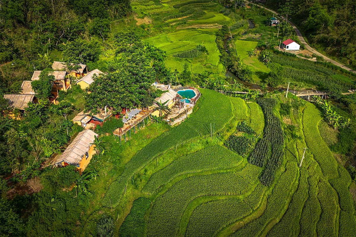 Most of the resorts and lodges in Pu Luong blend seamlessly into the landscape, often having a pool and rooms overlooking the rice fields. Some of the most popular choices are: