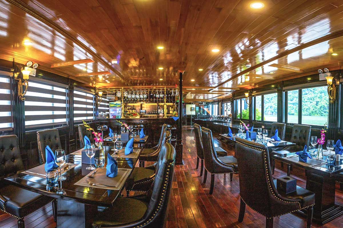 Enjoy breakfast while the boat gently sails through the morning mist, revealing the serene landscape of Lan Ha Bay.