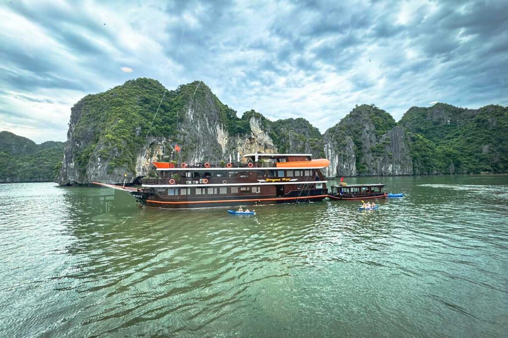 This boutique 3-day cruise through Lan Ha Bay offers a peaceful and authentic escape, ideal for travelers seeking both adventure and relaxation. Sail on a traditional wooden junk through quiet waters, far from the usual crowds. Along the way, you’ll kayak into hidden lagoons, cycle through a remote village, explore limestone caves, and join a Vietnamese cooking class. Whether you're traveling solo, as a couple, or with friends, this cruise fits seamlessly into a customized Vietnam journey with door-to-door arrangements and local expertise.