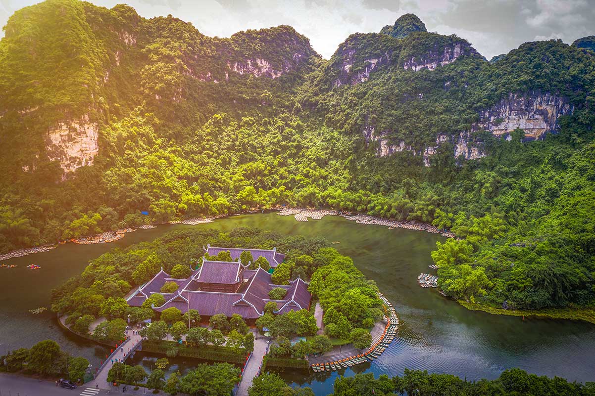 Between 7:00 and 7:30 a.m., your guide and driver will pick you up from your hotel in Hanoi’s Old Quarter. Get comfortable for the ride to Ninh Binh, a region known for its dramatic limestone mountains, lush countryside, and ancient temples.