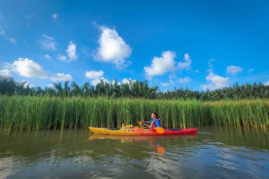 At 8:45 AM, meet your guide at the K Coffee meeting point, just outside Hoi An’s Ancient Town. After a short safety briefing and getting your gear ready, you’ll be set for a relaxed paddle along the Thu Bon River.